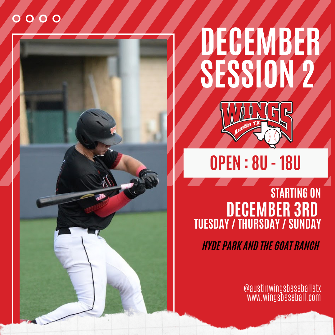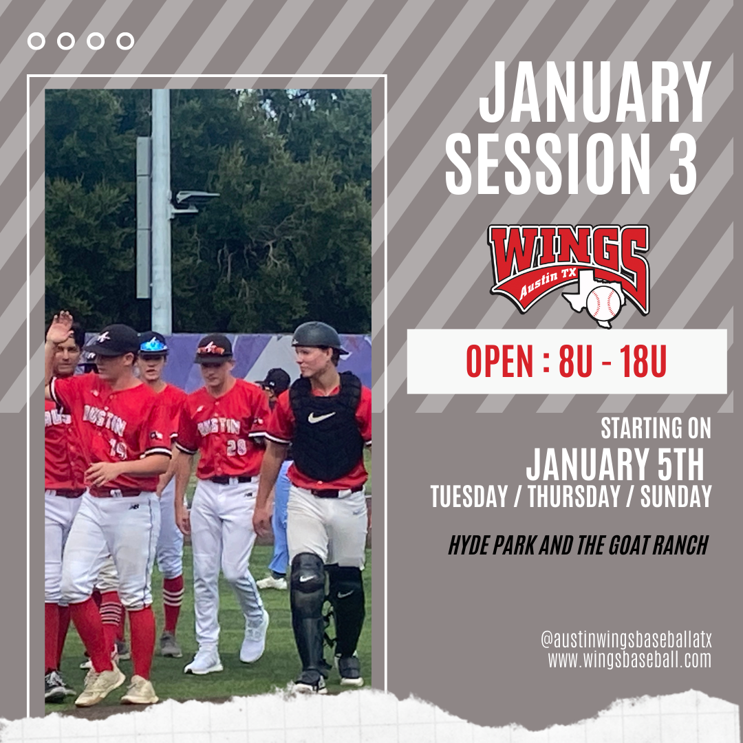 Austin Wings will be providing winter camps that will help players develop, prepare and grow their skills before the spring season. The camps will consist of hitting and an arm care program on Tuesdays and Thursdays. Sundays will consist of a long toss program and defensive segments on the field.
